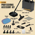 With a generous set of 23 versatile accessories, this steam cleaner is built to tackle any job—big or small. From nylon and brass brushes to a floor mop, scraper, angled nozzles, and squeegee, you’ll have the right tool for cleaning everything from car upholstery and wheels to grills and countertops. All accessories can be conveniently stored on-board or in the included storage bag, making your detailing and cleaning projects more efficient and organized.